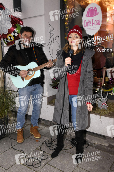 Sha / Grazia Di Fresco bei der CD-Präsentation von Sha und beim Glühwein-Verkauf am Glühweinfenster zugunsten von Frohes Herz e. V. im Cafe Rosa. München, 06.12.2020