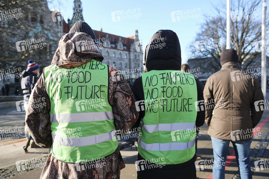 Treckerdemonstration 'Land schafft Verbindung' gegen die neue Düngeverordnung und strengere Vorgaben zum Arten- und Tierschutz von niedersächsischen Landwirten auf dem Trammplatz vor dem Rathaus. Hannover, 17.01.2020