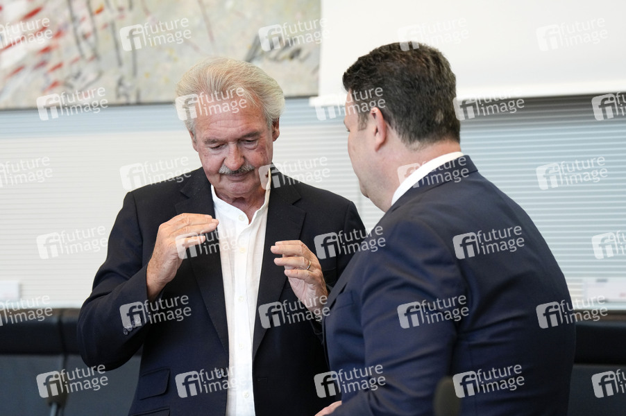 Jean Asselborn und Hubertus Heil bei der Fraktionssitzung der SPD-Bundestagsfraktion im Reichstagsgebäude. Berlin, 23.04.2024