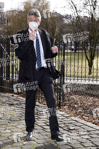 Michael Piazolo bei der Ankunft zur Pressekonferenz zu den aktuellen Beratungen zur Corona-Pandemie im Prinz-Carl-Palais. München, 23.02.2021