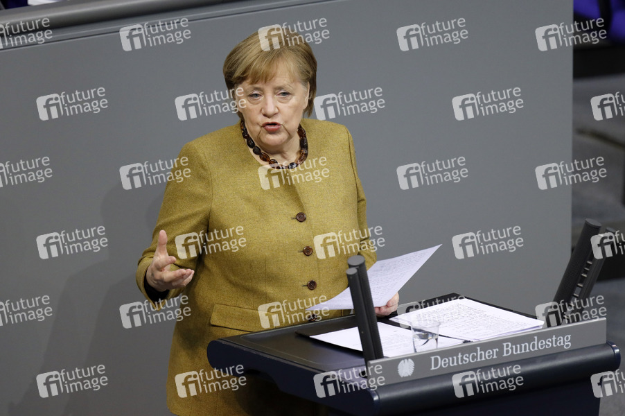 Angela Merkel in der 209. Sitzung des Deutschen Bundestages im Reichstagsgebäude. Berlin, 11.02.2021