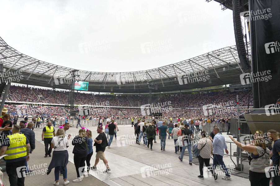 Prominenz, Celebrity, Celebrities, Musik, Konzert, Auftritt, Bühne, Stage, live, Unterhaltung, Entertainment, Kultur, Open Air, Stadionkonzert, Unwetter, Starkregen, Evakuierung