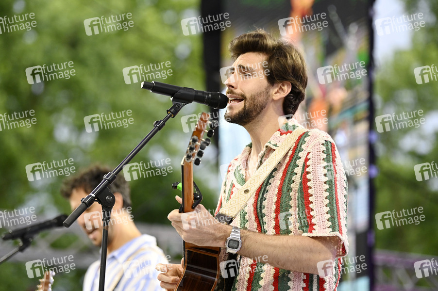 Alvaro Soler live bei einem Konzert auf dem Demokratiefest zu 75 Jahren Grundgesetz auf der 360-Grad-Bühne zwischen Kanzleramt und dem Deutschen Bundestag. Berlin, 24.05.2024