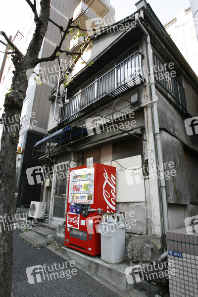 Getränkeautomat vor altem Haus