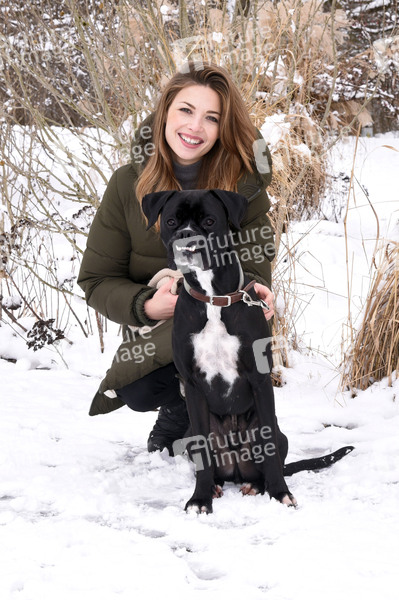 Lena Meckel mit ihrem Hund Ludwig beim Winterspaziergang im Ostpark. München, 07.01.2021