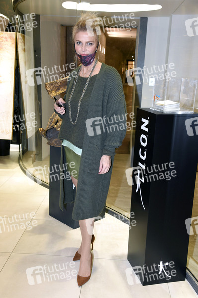 Ursula Gottwald bei der Finissage der Ausstellung 'Farb-Pracht' mit Versteigerung des Werkes 'Awakening' von der Künstlerin Simone von Anhalt im Friseursalon Figaro. München, 31.10.2020