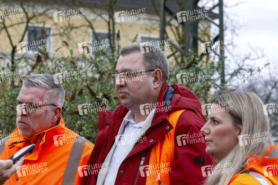 Florian Bonn, Dirk Pohlmann, Ricarda Kiehl beim Fototermin 'Endspurt für das Elektronische Stellwerk (ESTW) Linker Rhein' am Bahnhof Köln-West. Köln, 13.03.2024