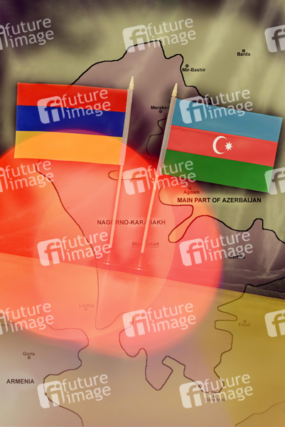 Armenien, Aserbaidschan, Arzach, Bergkarabach, Bosporus, Südkaukasus, Eskalation, Kriegszustand, Nikol Paschinjan, Arajik Harutjanjan, schwere Gefechte, Militäraktivitäten, Militäraktivität, militärischer Flächenbrand, Krieg, Kämpfe, Grenzregion, Unruheregion, Fahne, Fahnen, Flagge, Flaggen, Symbolbild, Symbolfoto, Fotomontage