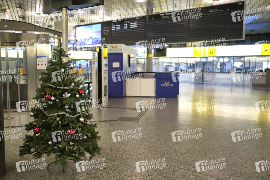 Kaum Flüge, wenige Passagiere, geschlossene Schalter und vorweihnachtliche Leere während des 2. Lockdowns am Hannover Airport. Langenhagen, 22.12.2020