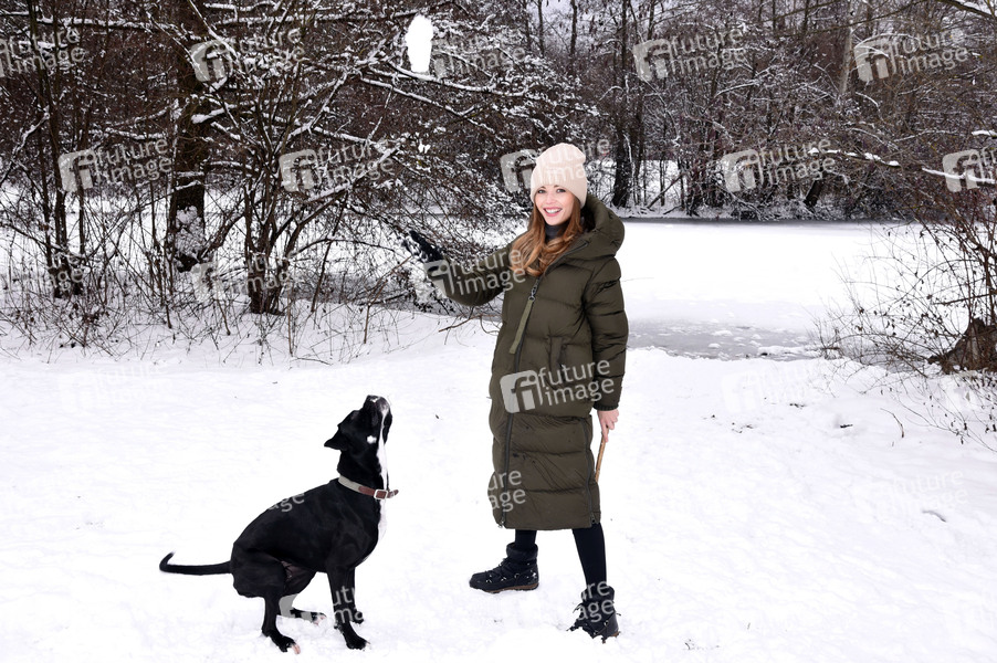 Lena Meckel mit ihrem Hund Ludwig beim Winterspaziergang im Ostpark. München, 07.01.2021