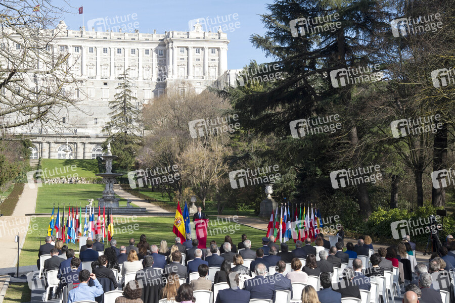 König Felipe VI. von Spanien beim Staatsakt zur Erinnerung an die Opfer von Terrorismus am Europäischen Gedenktags für die Opfer des Terrorismus im Palacio Real Garten. Madrid, 11.03.2021