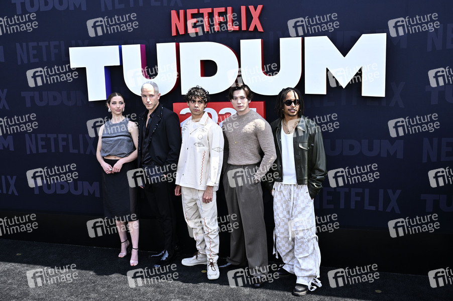 Emily Rudd, Taz Skylar, Inaki Godoy, Mackenyu and Jacob Romero beim Fan-Event 'Netflix Tudum 2025: The Live Event' im Kia Forum. Inglewood, 31.05.2025