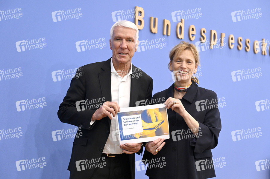 Ralf Wintergerst und Karin Prien bei der Bundespressekonferenz 'Seniorinnen und Senioren in der digitalen Welt' im Haus der Bundespressekonferenz. Berlin, 15.01.2026