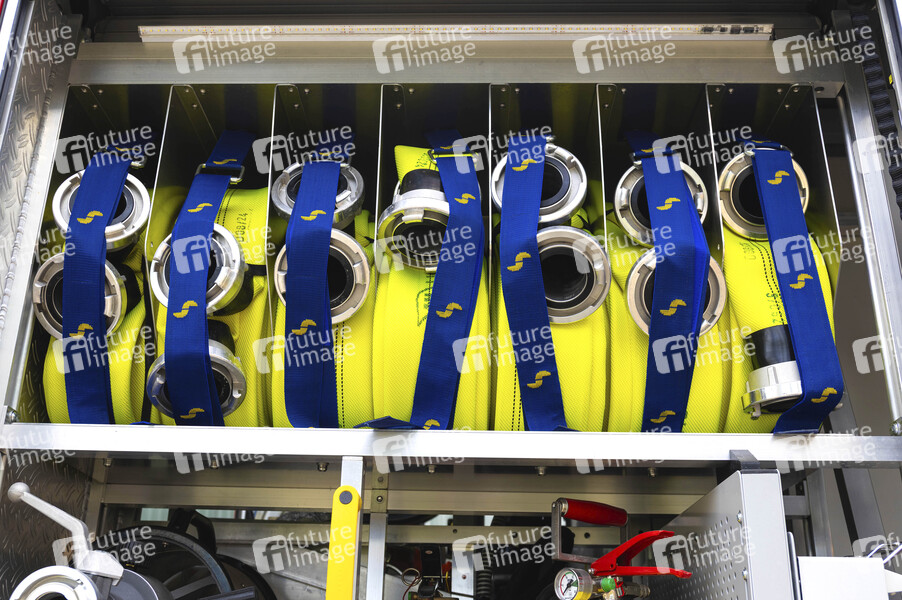 Detailaufnahmen von einem Einsatzfahrzeug der Feuerwehr Bergkette. Die Feuerwehr hat die Aufgabe, bei Bränden, Unfällen, Überschwemmungen und ähnlichen Ereignissen Hilfe zu leisten, d. h. Menschen, Tiere und Sachwerte zu retten sowie die Umwelt zu schützen, zu löschen und zu bergen, wobei der Menschenrettung Priorität zukommt. (Symbolfoto, Thememfoto) Stadthagen, 07.09.2025