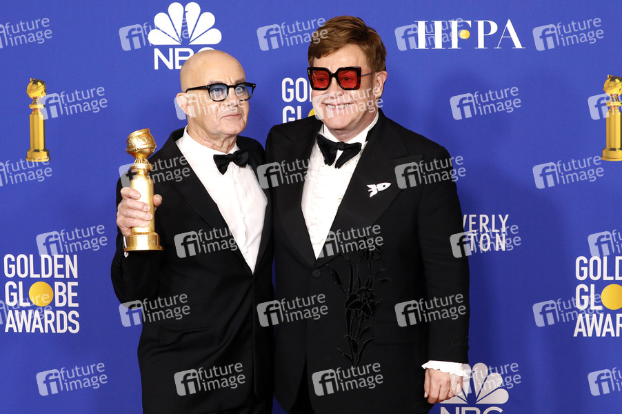Bernie Taupin und Elton John mit dem Preis für den Besten Filmsong 'I'm Gonna Love Me Again' aus dem Film 'Rocketman' bei der Verleihung der 77. Golden Globe Awards im Beverly Hilton Hotel. Beverly Hills, 05.01.2020