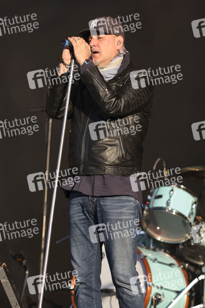 Kai Wingenfelder von Fury in the Slaughterhouse live beim Autokultur-Konzert auf dem Schützenplatz. Die Besucher verfolgen unter Berücksichtigung klarer Hygiene-Vorschriften während der Corona-Krise den Auftritt aus dem Auto. Hannover, 14.05.2020