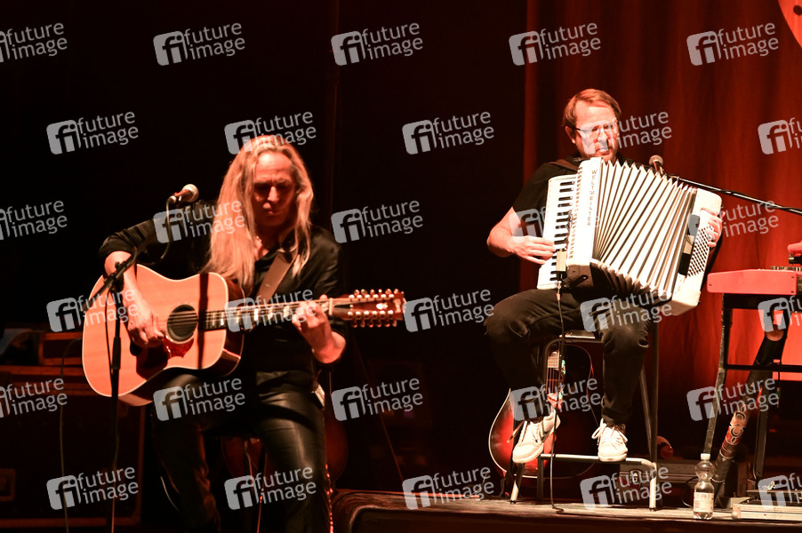 Uwe Hassbecker und Daniel Hassbecker von Silly live bei einem Konzert der 'elektroAkustik'-Tour im Kulturpalast Dresden. Dresden, 23.04.2025