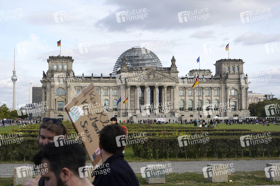 Demonstranten bei der 'Fridays for Future' Demonstration im Rahmen des weltweiten Klimastreiks am Reichstagsgebäude. Berlin, 20.09.2019
