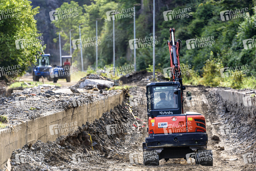 Nach dem Jahrhunderthochwasser in der Eifel durch heftige Regenfälle und Dauerregen mit Überschwemmungen und Überflutungen haben die Aufräumarbeiten im Ahrtal große Fortschritte gemacht. Einheiten von Polizei, THW, Bundeswehr und Feuerwehr mitsamt vielen freiwilligen Helfern haben Straßen geräumt, Schutt und Schlamm entfernt und die Menschen versorgt. Der Wiederaufbau wird trotzdem Jahre dauern. Im Bild Flutschäden in der Ortschaft Altenahr, in der die Flut viele Häuser zerstörte, 08.08.2021