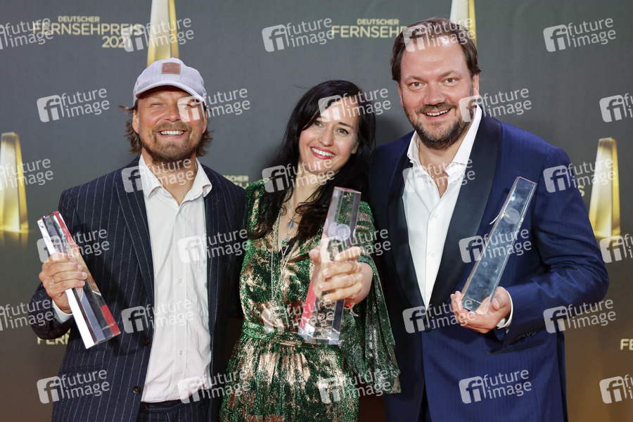 Lars Jessen, Carolin Haasis und Charly Hübner bei der Verleihung des Deutschen Fernsehpreises 2021 im Tanzbrunnen. Köln, 16.09.2021