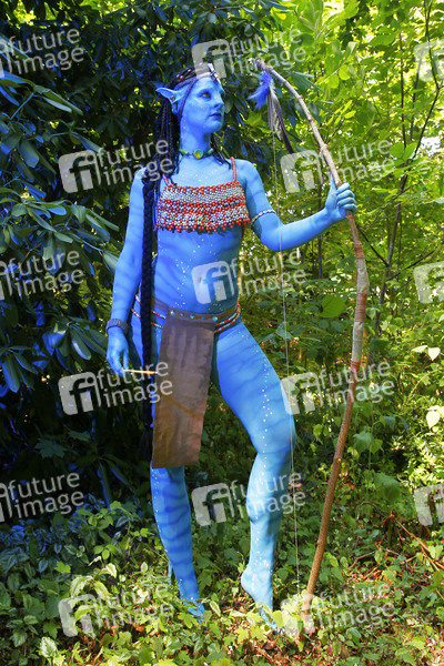 GEEK ART - Bodypainting meets SciFi, Fantasy and more: 'Avatar' Photoshooting mit Sarah Specker als Neytiri im Czarnecki-Garten. Hameln, 04.08.2019 - Ein Projekt des Fotografen Tschiponnique Skupin und des Bodypainters und Transformakers Enrico Lein