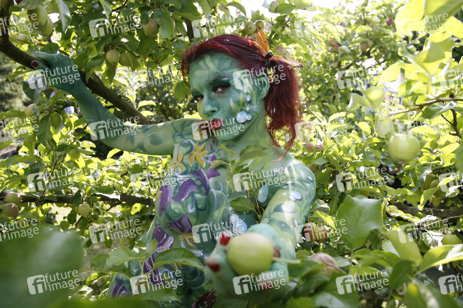 Bodypainting, Erotik, Frau, nackt, draußen, weiblich, Apfel, Apfelbaum, Baum, woman, nude, outdoor, female, erotic, apple, tree