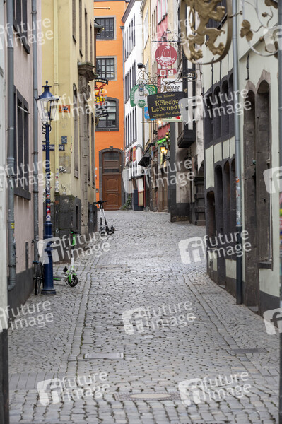 Menschenleere Salzgasse zur Auswirkung des Coronavirus. Köln, 19.03.2020