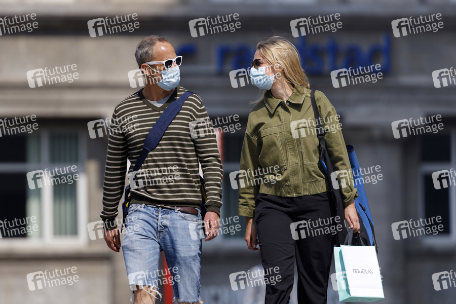 Maske, Masken, Maskenpflicht, Masken-Pflicht, Gesichtsmaske, Behelfsmaske, Behelfsmasken, Straßenbild, Öffentlichkeit, öffentlicher Raum, Maske tragen, Masken tragen, Mindestabstand, Lockerung der Corona-Maßnahmen, Tröpfcheninfektion, Spritzschutz, Eindämmung, Virenschutz, Übertragung, Maskenzwang, Bußgelder, Ordnungsgelder, Corona-Gesetze, Durchseuchung, immun, Immunität, Reproduktionszahl, Seuchenschutz, Virologie, Infektionsschutz, Atemschutz, Atemschutzmaske, Virenschutz, Schutzmaske, Schutzmasken, Atemschutzmasken, Maske, Masken, FFP1, FFP2, FFP3, FFP-Schutzklassen, Schutzklasse, Mundschutz, Mundschutzpflicht, Mund-Schutz, Mundschutz-Pflicht, Mund-Nase-Schutz, Mund-Nasen-Schutz, MNS, Ausbreitung, Corona-Schutz, Virus, Viren, Corona, Sars-CoV-2, Covid-19, Coronavirus, Coronaviren, Corona-Virus, Corona-Viren, Ansteckung, Ansteckungsgefahr, Epidemie, Pandemie, Infektion, Infektionen, Corona-Symptome, Symptom, Symptome, Krankheit, infiziert, infizieren, schützen, Schutz, Maßnahmen, Neuansteckungen, Ansteckung, Coronakrise, Corona-Krise, Coronamaßnahmen, Corona-Infektion, Corona-Infektionen, Corona-Schutz, Corona-Maßnahmen, epidemic, pandemic, WHO, World Health Organisation, Infektologie, Epidemiologie, Medikament, Medikamente, Ansteckungsrate, RKI, Impfung, Impfmittel, Bluttest, Blut-Test, Atemluft, Papiermaske, Papiermasken, Kontaktverbot, Ausgangsbeschränkungen, Mindestabstand, Ausgangssperre, Lockdown, Lock Down, Symbolfoto, Symbolbild