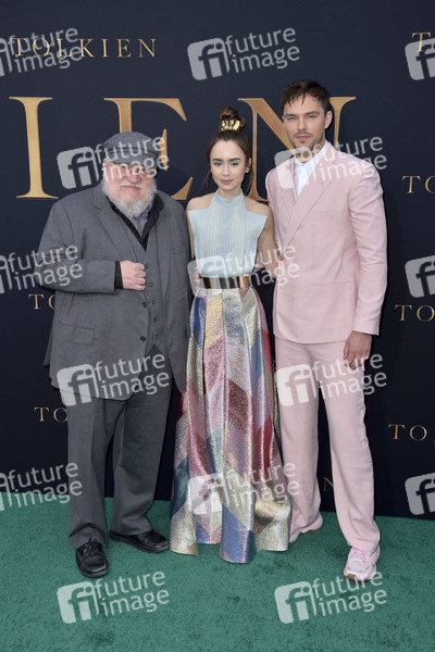 George R.R. Martin, Lily Collins und Nicholas Hoult beim Special Screening des Kinofilms 'Tolkien' im Regency Westwood Village Theater. Los Angeles, 08.05.2019