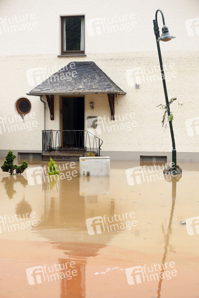 In der Eifel haben heftige Regenfälle und Dauerregen für Überschwemmungen und Überflutungen gesorgt. Im Ahrtal trat der Fluss vielerorts über die Ufer und überschwemmte nicht nur Keller sondern ganze Ortschaften. Im Bild der Ort Dernau (Landkreis Ahrweiler), der beinahe komplett von den Wassermassen geflutet wurde. Viele Menschen verloren alles. Dernau, 15.07.2021