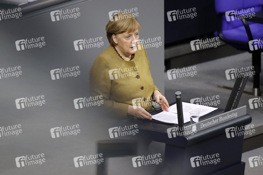 Angela Merkel in der 209. Sitzung des Deutschen Bundestages im Reichstagsgebäude. Berlin, 11.02.2021