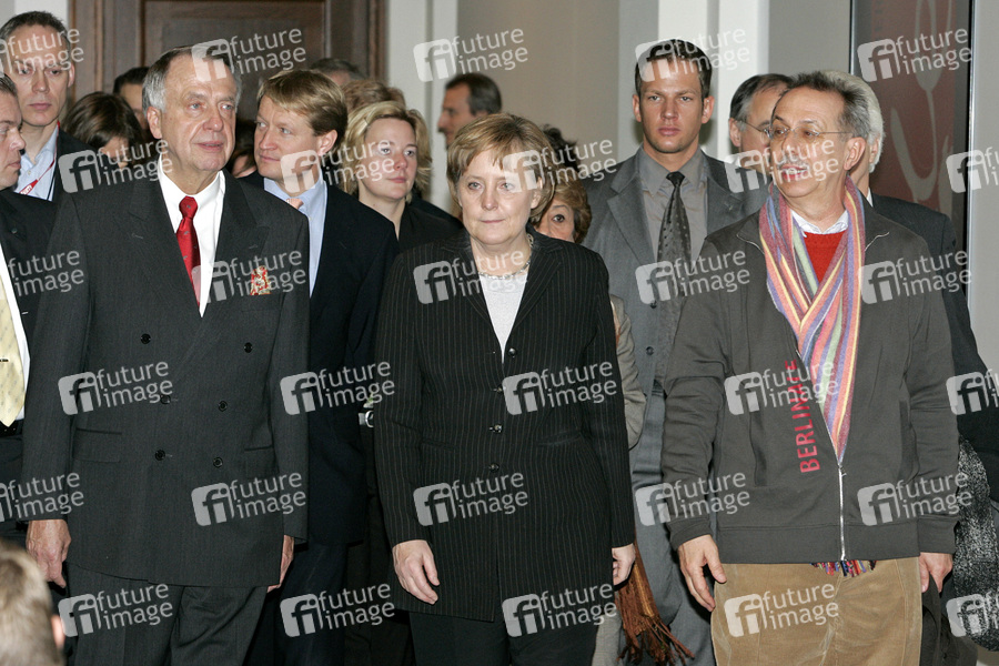 Bernd Neumann (Staatsminister für Kultur und Medien), Angela Merkel (Bundeskanzlerin) und Dieter Kosslick (Festivaldirektor) bei der Eröffnung des European Film Markets auf der Berlinale 2006 / 56. Internationale Filmfestspiele Berlin. Berlin, 10.02.2006
