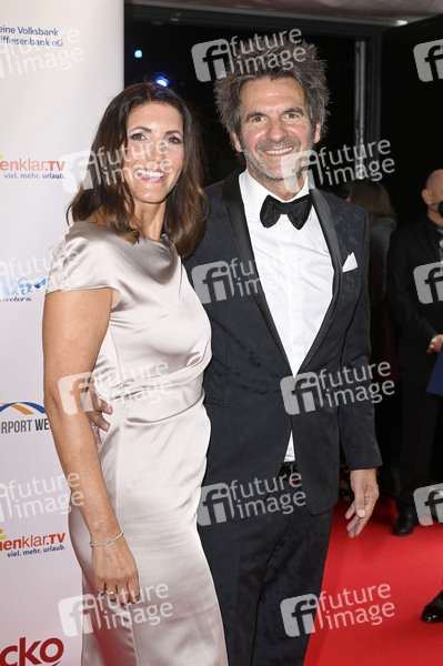 Patrick Hufen mit Ehefrau Sabine bei der Verleihung der Goldenen Sonne 2021 während der Sonnenklar.TV Gala im Wunderland Kalkar. Kalkar, 28.08.2021