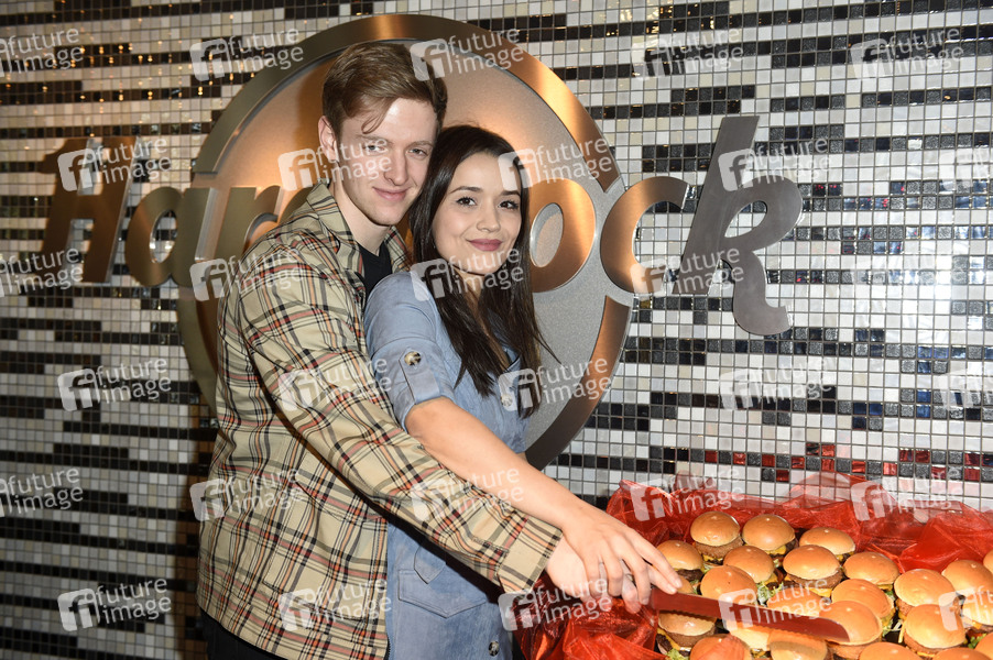 Timur Bartels mit Freundin Michelle Math beim Probieren, Anschneiden und Verteilen der Valentinstag-Burger im Hard Rock Cafe. Berlin, 13.02.2020