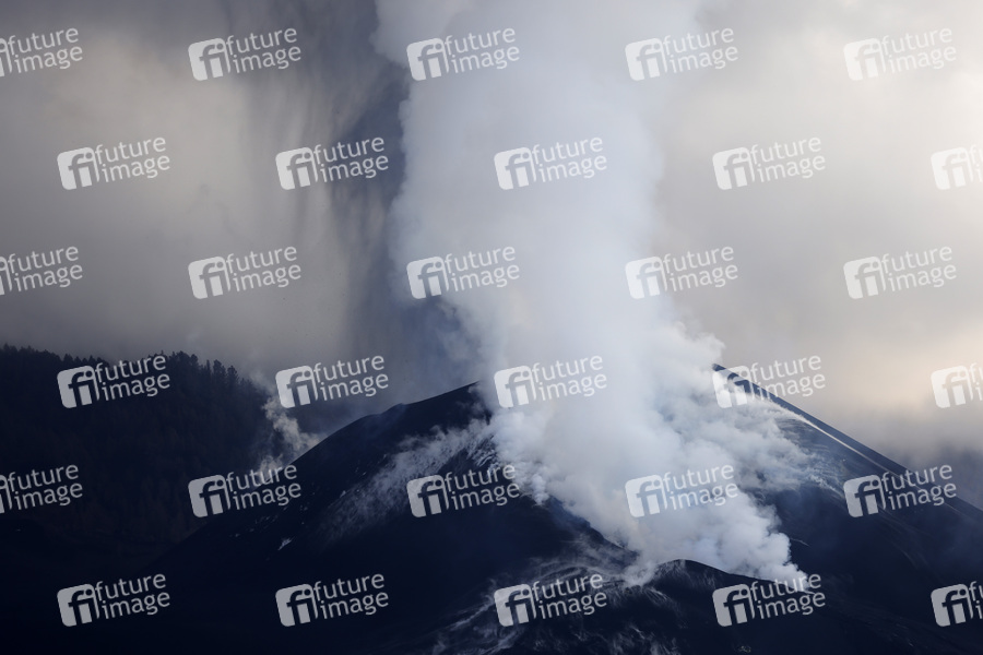 Der Vulkan Cumbre Vieja auf La Palma spuckt auch 2 Monate nach Beginn des Ausbruchs weiter Lava und Aschewolken. Aktuell erschüttern bis zu 300 Erdbeben pro Tag die Kanareninsel. Die Aktivität des Vulkans hat nach Seismologen wieder zugenommen und ist der längste gemessene Ausbruch auf der Insel seit 340 Jahren. La Palma, 19.11.2021