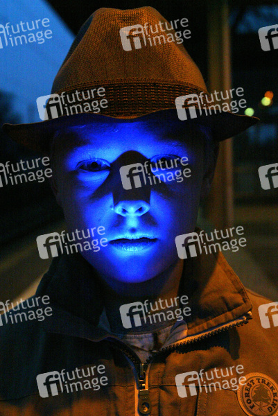 Junge, Hut, Nacht, blau