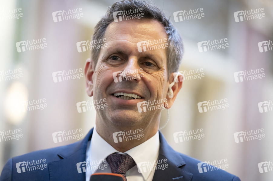 Olaf Lies beim Pressestatement am Rande der 1054. Sitzung des Bundesrates im Plenarsaal des Preußischen Herrenhauses. Berlin, 23.05.2025