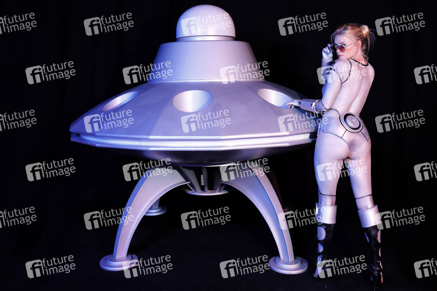 GEEK ART - Bodypainting and Transformaking: UFO Photoshooting mit Daniela Buchholz als Space Girl mit einem UFO im Filmwelt Center. Bad Münder, 13.10.2021 - Ein Projekt des Fotografen Tschiponnique Skupin und des Bodypainters und Transformakers Enrico Lein