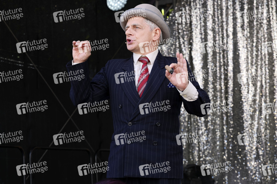 Volker Zack in der Rolle des Egon Olsen auf der Bühne des Boulevardtheater beim Stadtfest Dresden Canaletto 2025. Dresden, 17.08.2025