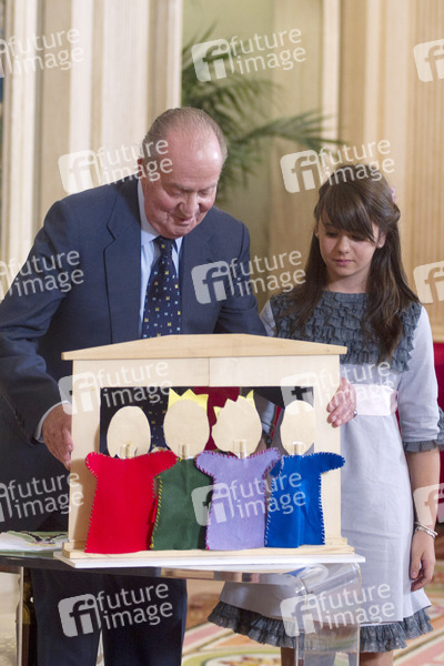 König Juan Carlos empfängt die Gewinner des 'Qué es un Rey para ti' Schulwettbewerbs im Zarzuela Palast, Madrid