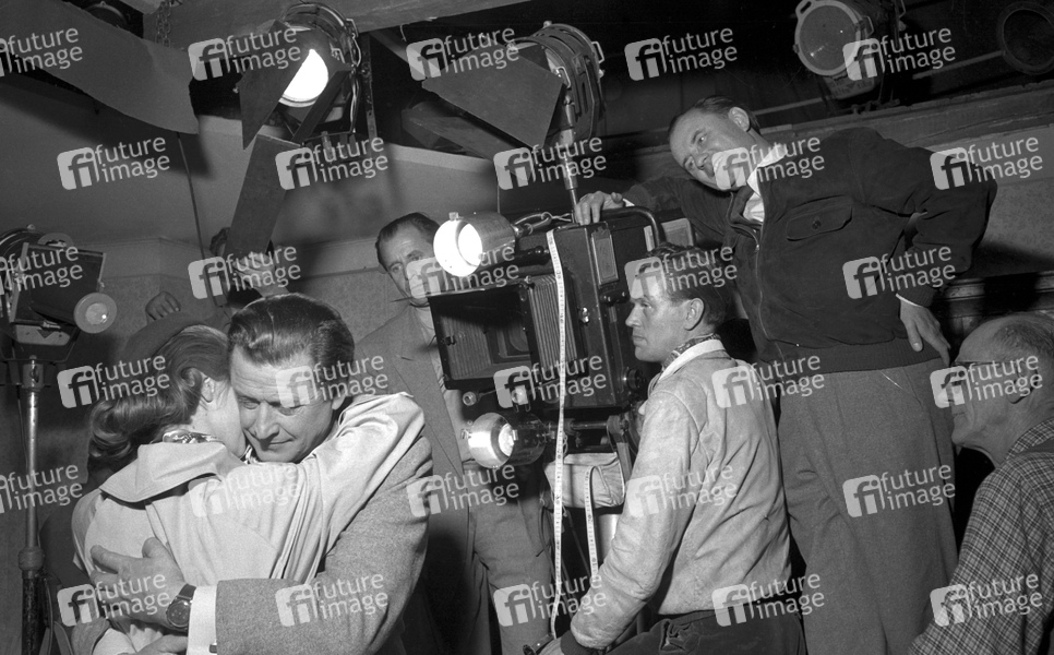 Gertrud Kückelmann, Hans Söhnker und Wolfgang Liebeneiner mit Filmcrew