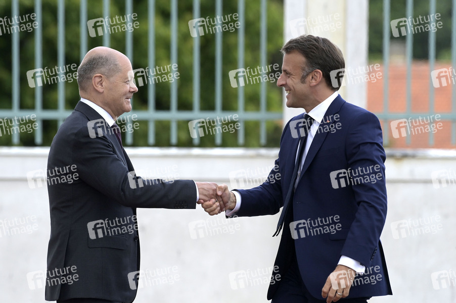 Olaf Scholz und Emmanuel Macron beim Treffen des Deutsch-Französischen Ministerrats im Gästehaus der Bundesregierung Schloss Meseberg. Meseberg, 28.05.2024