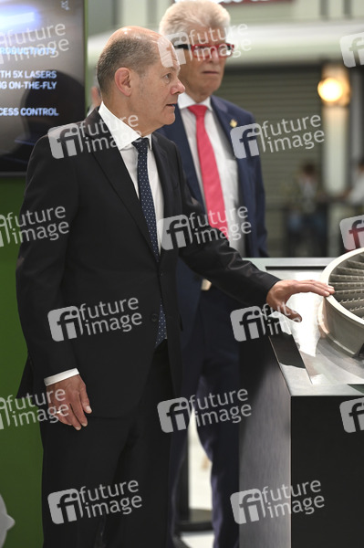 Olaf Scholz beim Eröffnungsrundgang am Stand von Adira auf der Hannover Messe 2022 auf dem Messegelände. Hannover, 30.05.2022