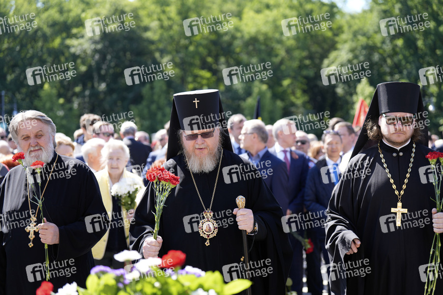 Russisch-orthodoxe Geistliche beim Gedenktag an das Kriegsende vor 79 Jahren am Sowjetischen Ehrenmal in Treptow. Berlin, 09.05.2024