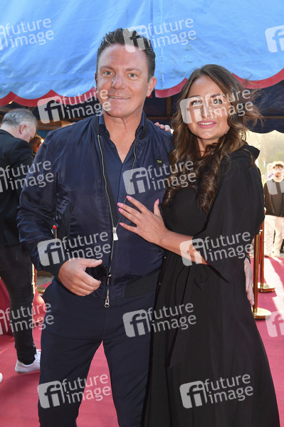 Stefan Mross mit Partnerin Eva Luginger bei der Premiere des Circus Krone Tourneeprogramms 'Farbenspiel - Gold Edition' im Circus Krone Zelt auf der Theresienwiese. München, 10.04.2025