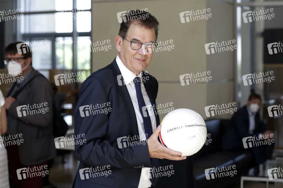 Gerd Müller mit EM-Fußball am Rande der 234. Sitzung des Deutschen Bundestages im Reichstagsgebäude. Berlin, 11.06.2021
