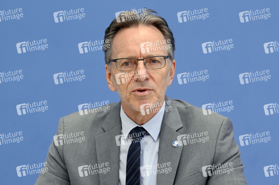 Holger Münch bei der Bundespressekonferenz zur Vorstellung der Zahlen kindlicher Gewaltopfer - Auswertung der Polizeilichen Kriminalstatistik 2021 im Haus der Bundespressekonferenz. Berlin, 30.05.2022