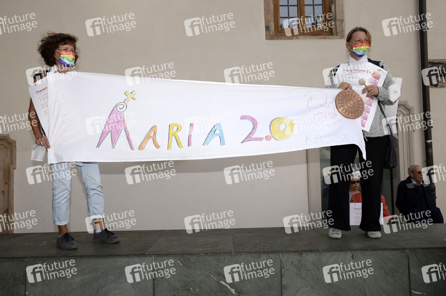 Versammlung, Treffen, Deutsche Bischofskonferenz, Zusammenschluss der römisch-katholischen Bischöfe aller Diözesen in Deutschland, Katholische Kirche, Glaube, Religion, Demonstration, Demonstranten, Demo, Kundgebung, Protest, Aktion, Banner, Parolen, Politik, Frauen in der kirche, Gleichberechtigung, Mariazweipunktnull