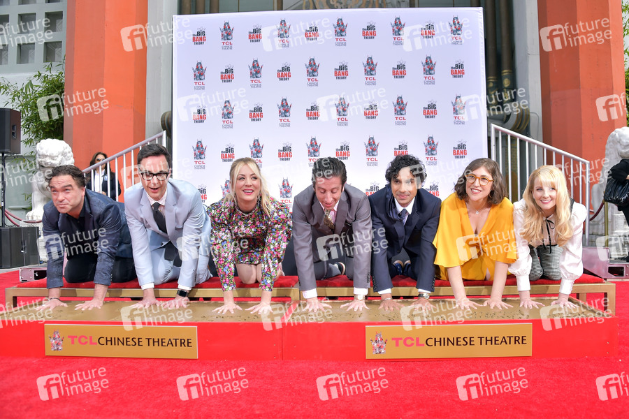 Johnny Galecki, Jim Parsons, Kaley Cuoco, Simon Helberg, Kunal Nayyar, Mayim Bialik und Melissa Rauch bei der Handprints Ceremony am TCL Chinese Theatre Hollywood. Los Angeles, 01.05.2019