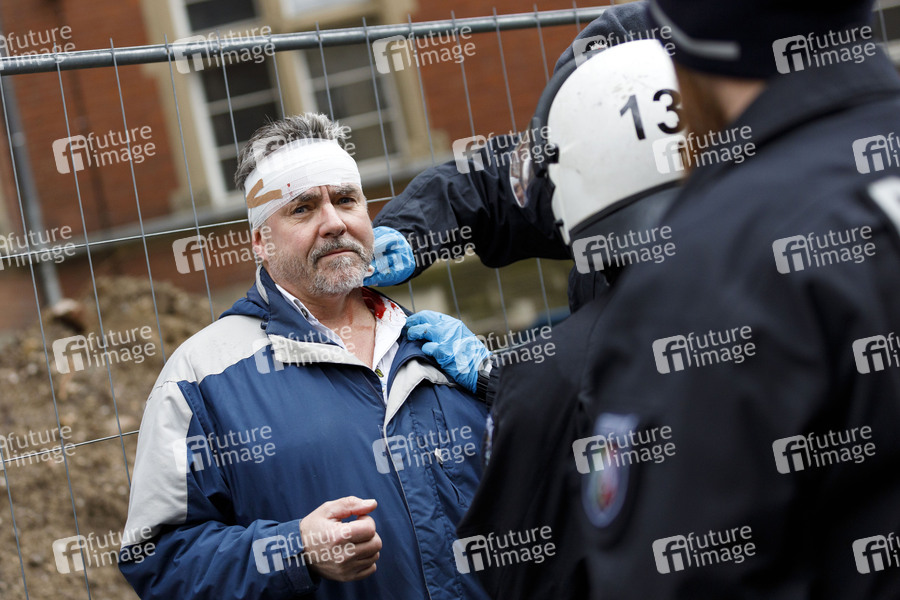 Oma-Gate, Omagate, Klimasau, Klima-Sau, Umweltsau, Umwelt-Sau, Proteste, Demo, GEZ, Rundfunkbeitrag, Beitragsgebühren, Rundfunkgebühren, WDR, WDR-Demo, Omagate-Demo, Satire, linke Gewalt, Kopfverletzung, Erste Hilfe, verletzter Demonstrant, gefährliche Körperverletzung, Antifa, Symbolbild, Symbolfoto